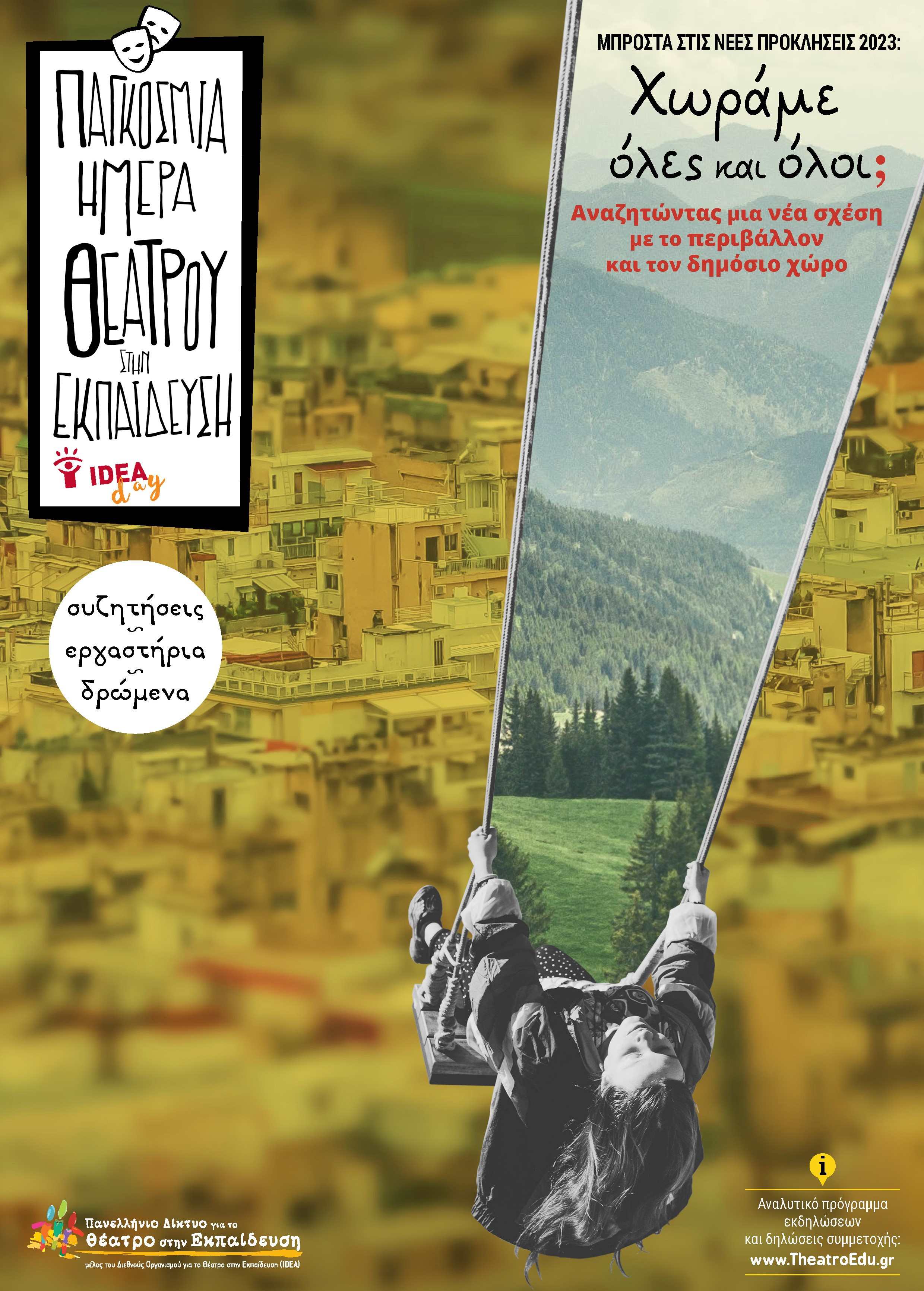 Το Πανελλήνιο Δίκτυο για το Θέατρο στην Εκπαίδευση, τακτικό μέλος του IDEA, συντονίζει στην Ελλάδα τις εκδηλώσεις και τις δράσεις αυτές, ενώ παράλληλα μέλη και συνεργάτες του στην Εκπαίδευση οργανώνουν σε διάφορες πόλεις και με ελεύθερη είσοδο βιωματικά εργαστήρια, συζητήσεις, ημερίδες, δρώμενα καθώς και δραστηριότητες με παιδιά και νέους.