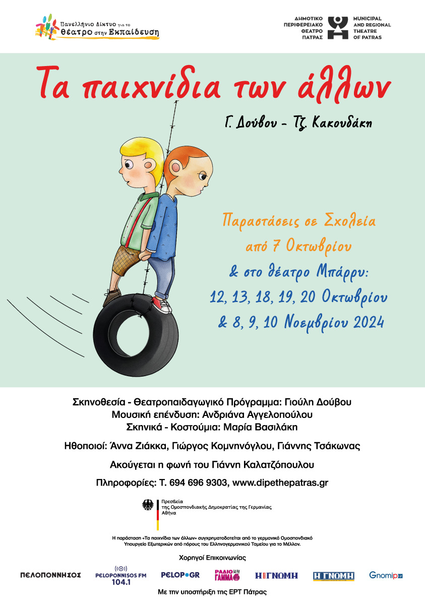 Το Πανελλήνιο Δίκτυο για το Θέατρο στην Εκπαίδευση σε συνεργασία με το ΔΗ.ΠΕ.ΘΕ. Πάτρας παρουσιάζει την θεατρική παράσταση «Τα παιχνίδια των άλλων».