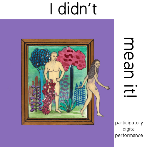 Το "I didn’t mean it!" είναι μια συμμετοχική περφόρμανς με ερευνητικό σκοπό [participatory performance-based research), η ιδέα της οποίας προέκυψε τον Απρίλιο του 2021 στη Λέσβο μετά από μια μακρά περίοδο κοινωνικού αποκλεισμού στην Ελλάδα.